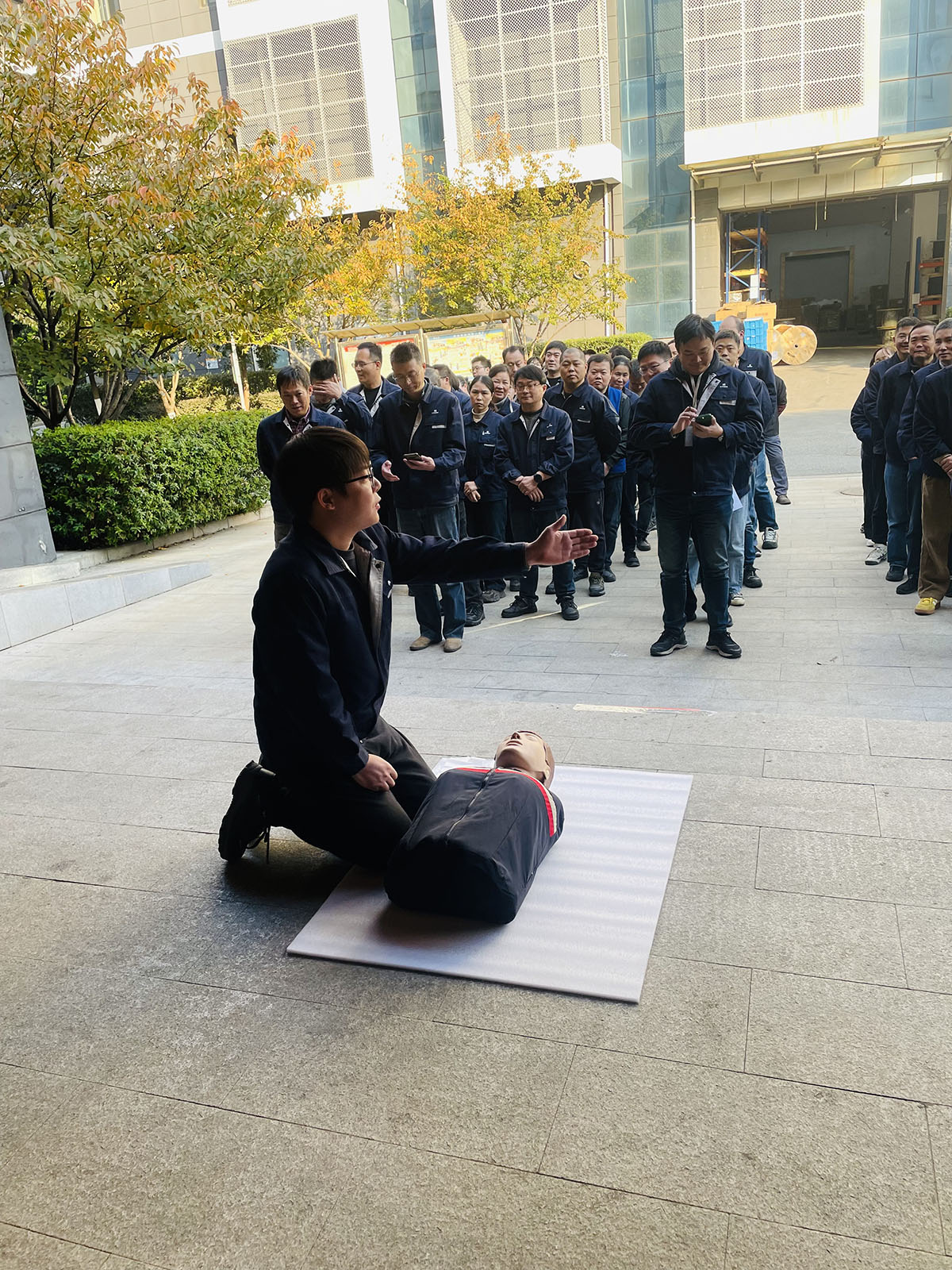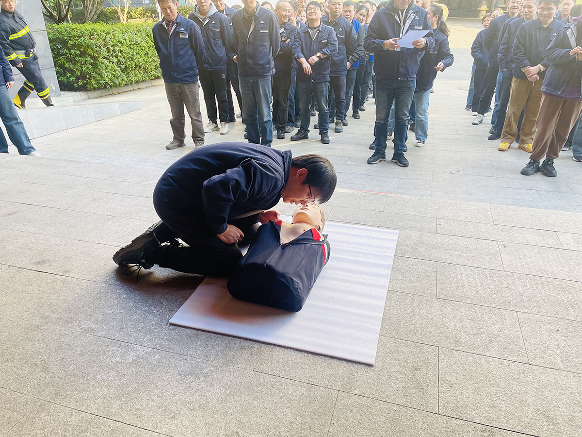 下午15时10分,火灾警报骤然响起,演练正式启动。本次演练模拟二楼包装物仓库因电路故障引发“火情”,现场浓烟弥漫。各部门负责人迅速响应,组织员工用湿毛巾捂住口鼻、弯腰低姿,沿疏散指示标识快速有序撤离至安全区域。整个过程仅用时2分40秒,全员安全抵达集结地点,无一人遗漏,高效完成疏散任务。应急搜救小组随即展开行动,队员携带专业装备进入“火场”,通过呼喊定位等方式细致排查,成功营救并转移出一名模拟“被困人员”,展现出良好的协同作战能力。在救援区,医疗小组针对“昏迷”“头部外伤”等模拟伤情,现场演示了心肺复苏判断意识、开放气道、胸外按压、人工呼吸等全流程操作,以及三角巾头部包扎技巧。讲解清晰、操作规范,使员工掌握了实用的急救方法。演练结束后,总指挥马总进行现场点评,充分肯定各环节衔接紧密、人员配合到位,有效检验了应急预案的可行性与队伍的实战水平。同时,他也指出疏散过程中个别动作不规范、搜救响应速度有待提升等问题,强调“消防安全无小事,必须将演练所学转化为真正的应急处置能力”。